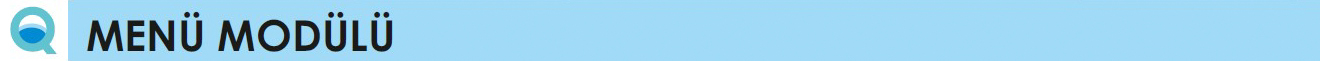Ürünlerin gruplanarak menü oluşturulmasını sağlayan modüldür. Sipariş noktalarında ürün olarak tanımlanacak olan menülerde stok kontrolü yapılması mümkün olmadığından menü modülümüz hazırlanmıştır. Sınırsız menü oluşturulabilmektedir. Menü satışı yapıldığında menüye dahil olan ürünlerin stoğundan menüye tanımlanmış miktarda (gr. kg. adet) düşüş gerçekleştirilir.