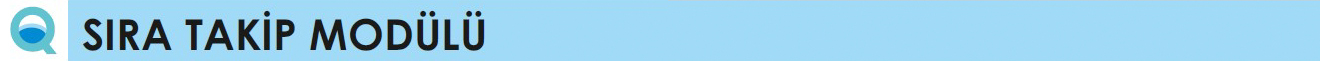 Sipariş yönetim modülü aracılığıyla alınmış olan siparişin müşteriye teslim edilen adisyon nüshasında özel algoritma ile oluşturulan sıra numaraları basılmaktadır. Siparişin tamamı hazırlandığında ilgili noktalardan verilen hazır komutu ile birlikte sıra takip ekranlarında bu numaralar gösterilmekte ve yoğun zamanlardaki yığılmanın önüne geçilmektedir.